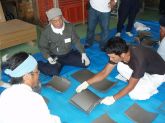 の切断面の墨入れ指導を受けた後、各班で準備に勤しみ、2日目の瓦カットの準備を終えた時点で初日